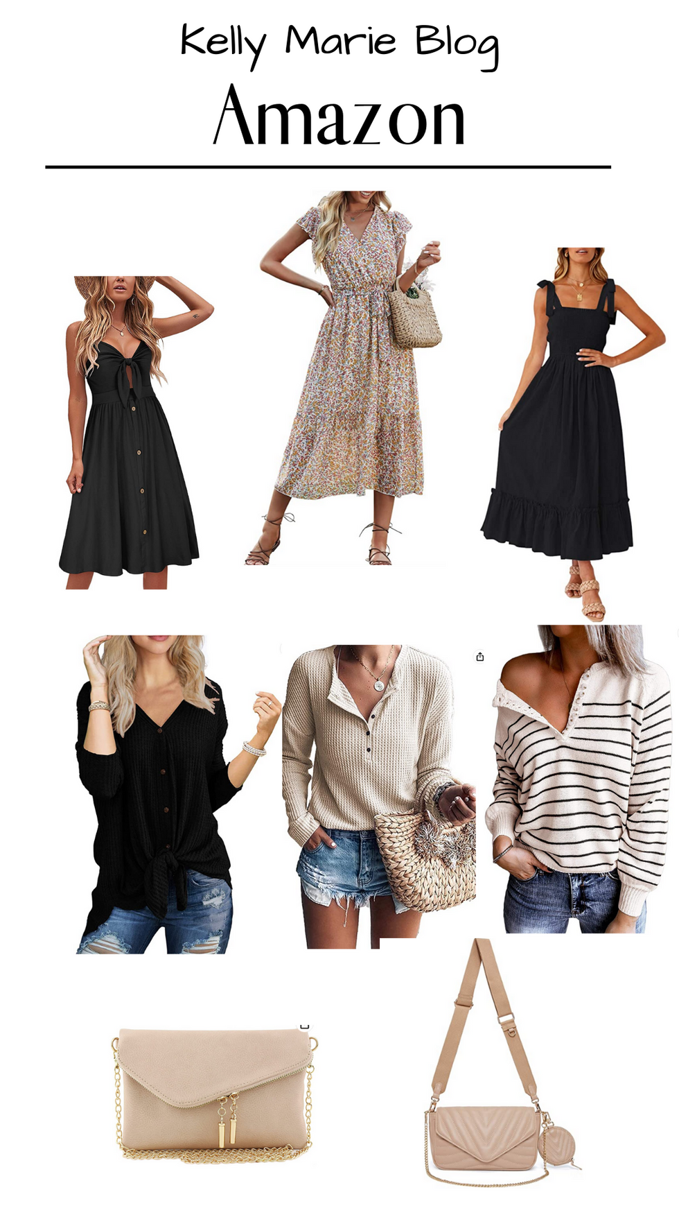 Hi Friends, I wanted to share some of my favorite Amazon Finds. July 12 & 13th are also Amazon Prime Day and they are have lots of great sales. I am wearing the black top and black dress on the top left of collage in the photos below. Everything is linked below.